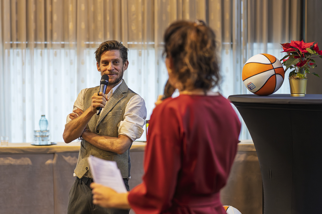 Thijs Zonneveld trapt de bijeenkomst af met zijn lezing over sport, bewegen en noodzaak.