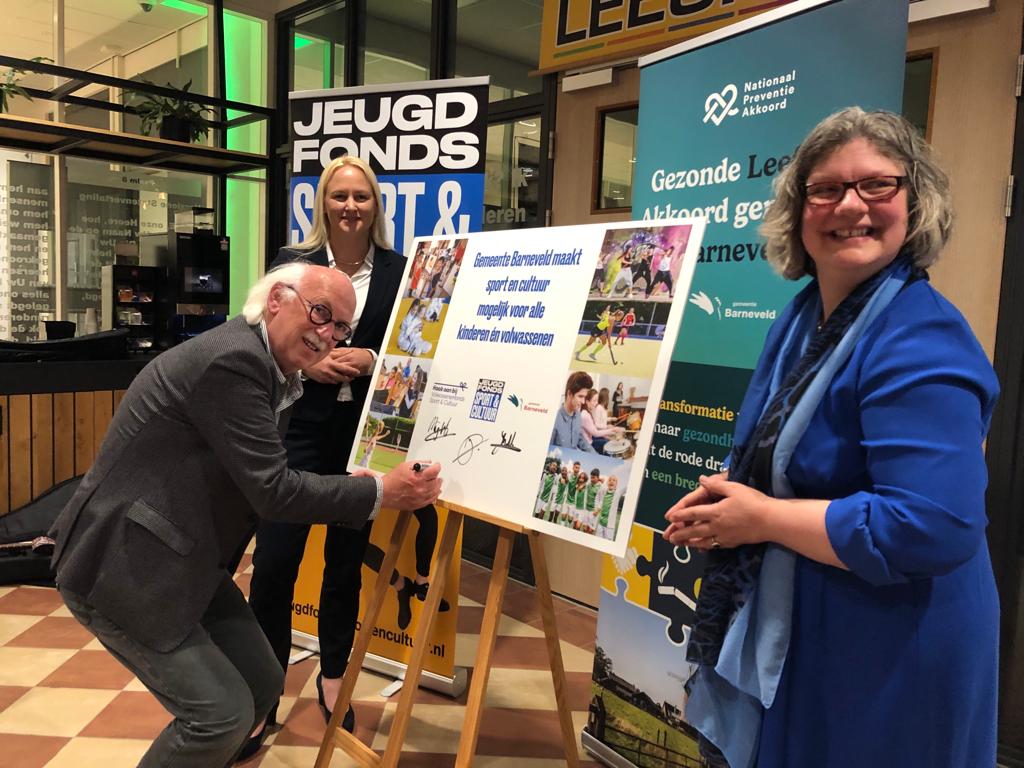Tijdens een netwerkbijeenkomst van het netwerk gezonde leefstijl werd de feestelijke aftrap gegeven voor de gezamenlijke start van het Jeugdfonds en het Volwassenenfonds in de gemeente Barneveld. Ambassadeur van het Jeugdfonds, Marise den Bakker, zorgde voor de juiste toon met haar liedjes. En bioloog en gedragswetenschapper John Dierx maakte duidelijk hoe belangrijk het is dat iedereen mee kan doen aan sport en cultuur: “Gezondheid raakt ons allemaal”. Verschillende wethouders ondertekenden tot slot de overeenkomst met het Jeugdfonds en het Volwassenenfonds.
