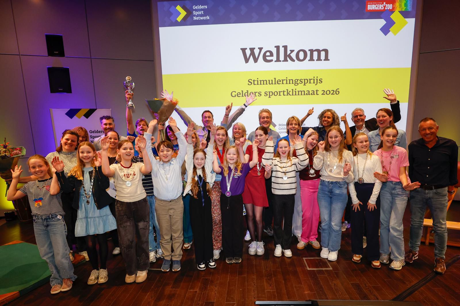De prijzen werden uitgereikt tijdens een feestelijke finale in Burgers’ Zoo in Arnhem, waar partners uit het Gelderse sportnetwerk samenkwamen voor een inspirerende netwerkbijeenkomst. De kinderjury koos de winnende plannen uit de finalisten vanwege hun vernieuwende aanpak, sterke lokale betrokkenheid en grote maatschappelijke impact op sport en bewegen voor kinderen en jongeren.